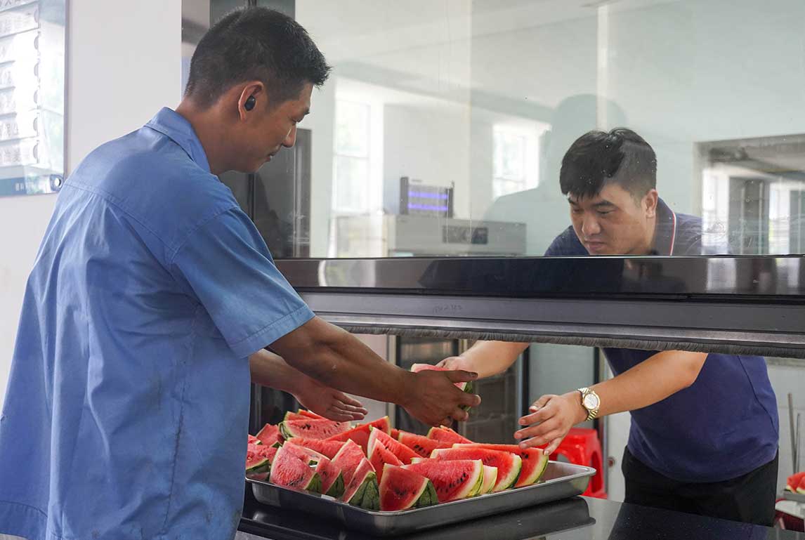 炎炎夏日送清凉,滴滴关怀暖人心。随着气温的不断升高,公司每天为员工准备了清凉解暑的饮品和水果,在炎炎夏日给员工带来丝丝清凉。