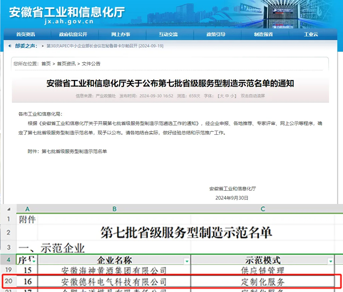 根据《安徽工业和信息化厅关于开展第七批省级服务型制造示范遴选工作的通知》,经多方专业评审后,milan米兰电子(中国)官方网站电气入选“安徽省服务型制造示范企业”名单。