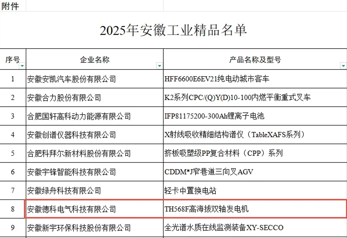 喜报速递 | milan米兰电子(中国)官方网站高海拔双轴发电机入选2025年“安徽工业精品”榜