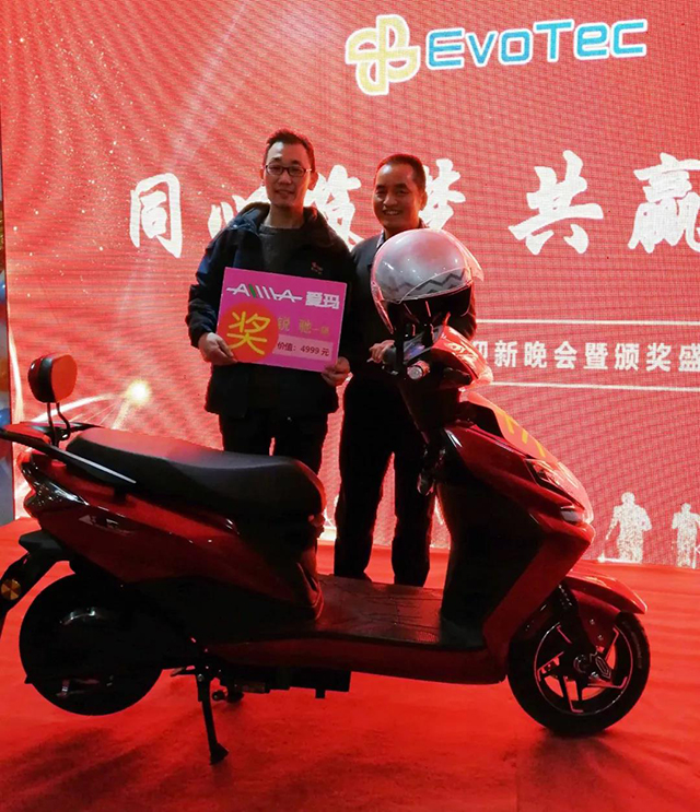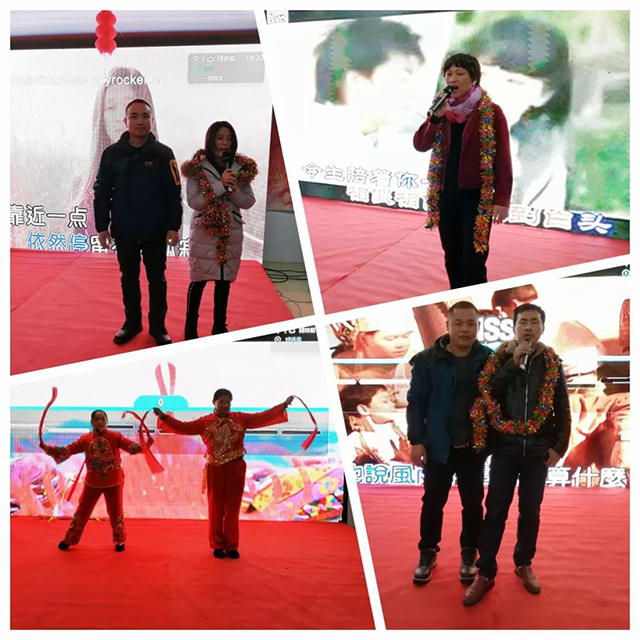 年会设置了抽奖环节,公司为员工们精心准备了丰富的奖品,奖品包括阳光暖绒四件套、苏泊尔电饭锅、美的消毒柜、华为智能手机、爱玛电动车和现金大奖等等,把现场的气氛一次次地推上了高潮。